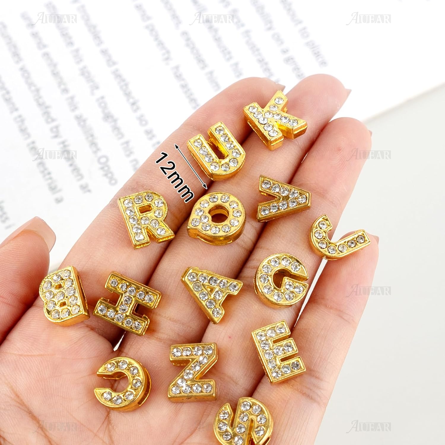 - Golden Rhinestone Slide Alphabet Letters Are Made of Alloy and Rhinestone